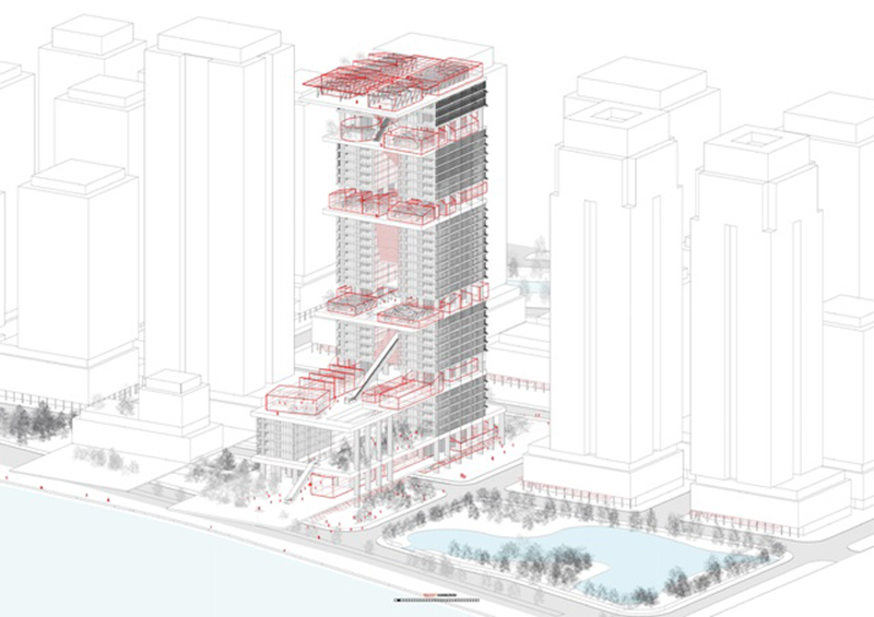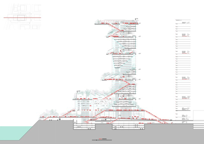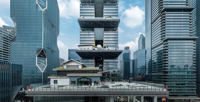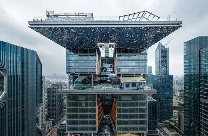 其標(biāo)志性設(shè)計(jì)包括4道單邊懸挑景觀平臺,形似“火箭發(fā)射臺”,創(chuàng)下國內(nèi)超高層直挑結(jié)構(gòu)首例。